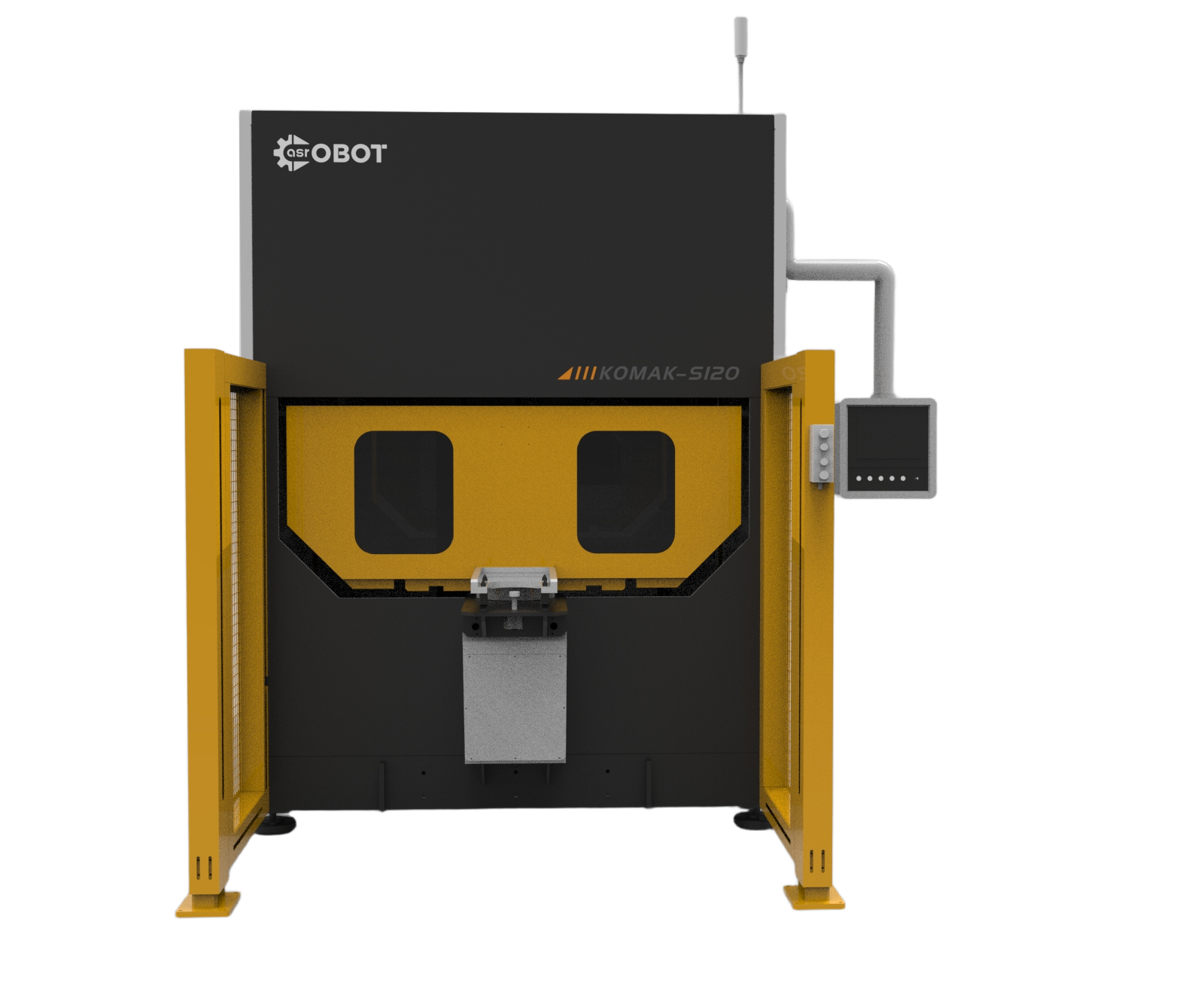 KOMAK-S120系列大尺寸打磨機(jī)器人適用于120kg(含工裝)以內(nèi)鑄件的打磨、切割。采用類機(jī)器人架構(gòu),配備雙工位,選配激光測(cè)距以及冷卻系統(tǒng)