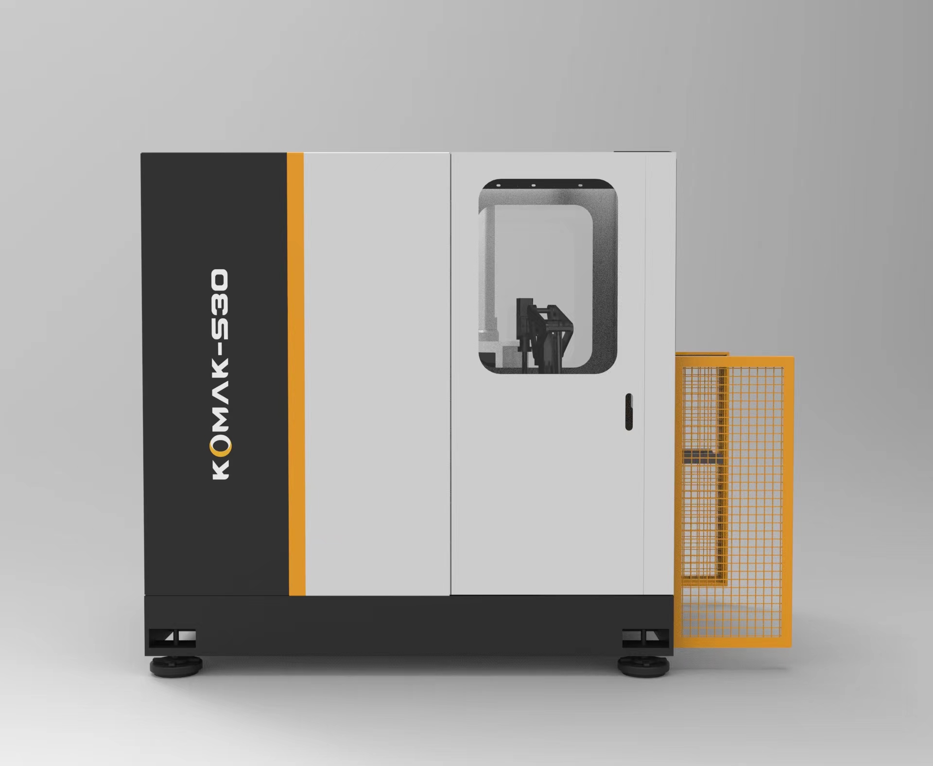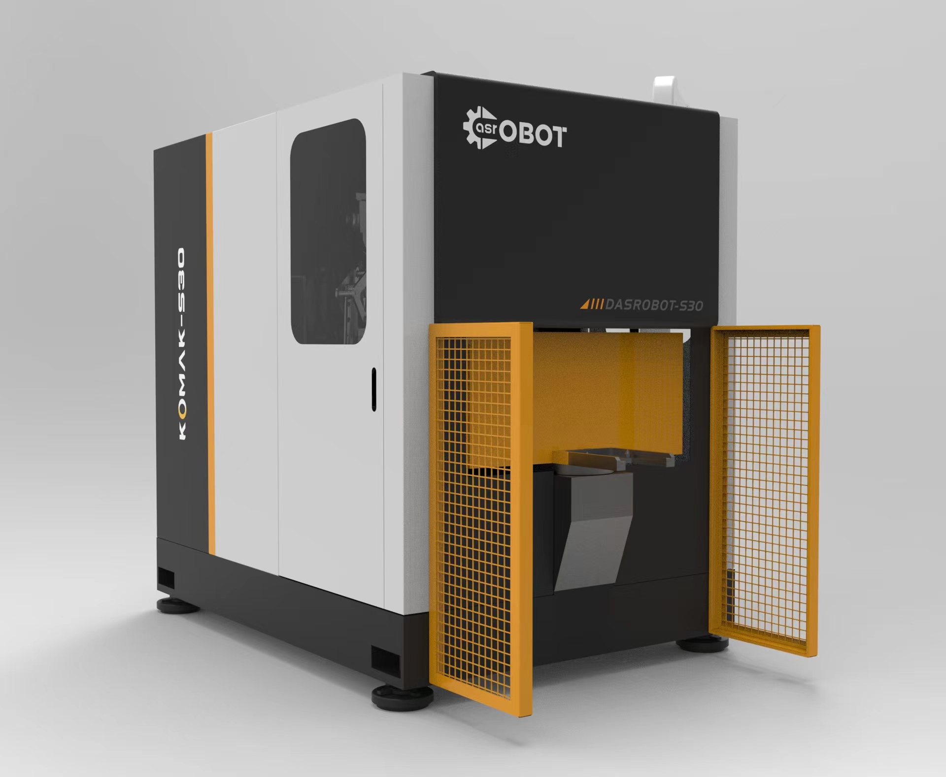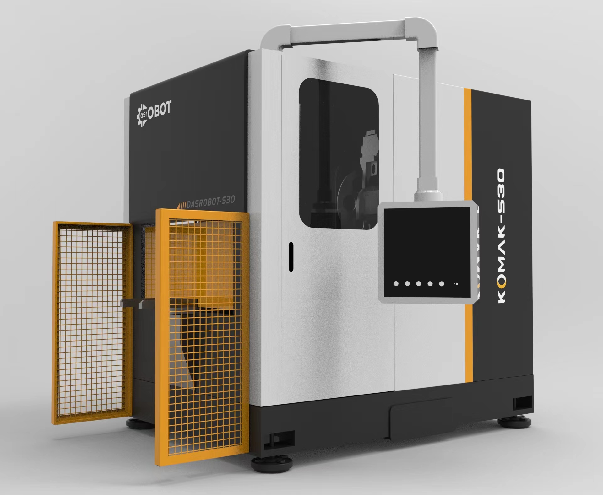 KOMAK-S30全自動磨削機是我司為客戶全自主化研發(fā)的標準型產品,采用類機器人架構、9軸5聯(lián)動,適用于0?30kg(含工裝)小尺寸的鑄件產品打磨、切割。設備兼顧柔性和剛性,可以靈活打磨各類形狀復雜的鑄件,標配雙工位,可同時打磨不同產品,節(jié)約上下料周期,方便自動化組線。